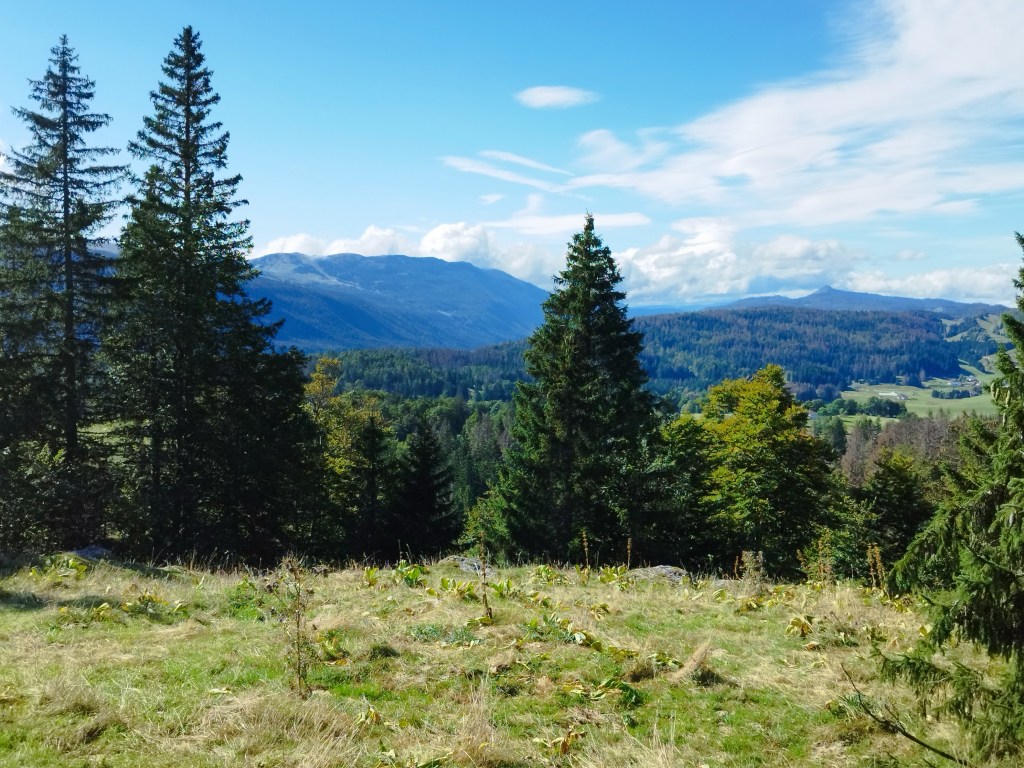 puis repartons par des combes inconnues … » très beau !! » les paysages vont avec : les Monts Jura …. La Dôle !!! (Mais où est donc le plus haut sommet maintenant?)