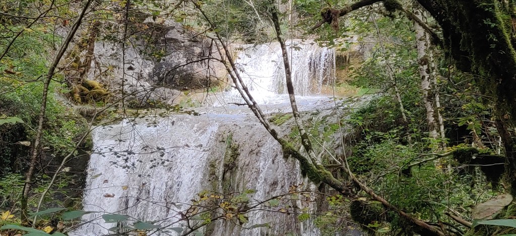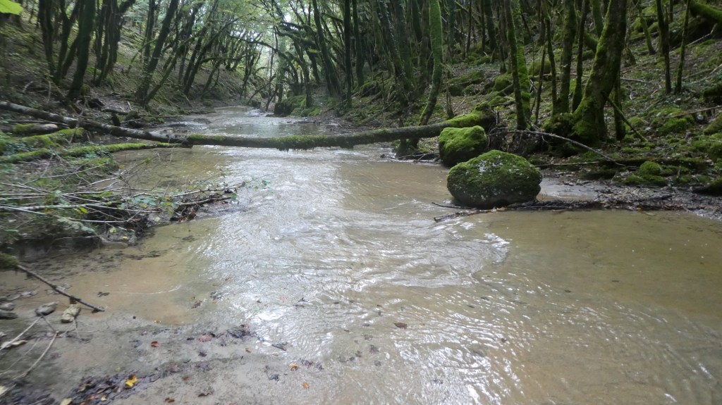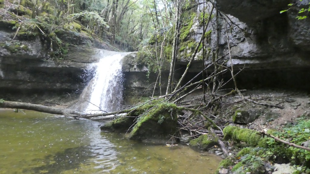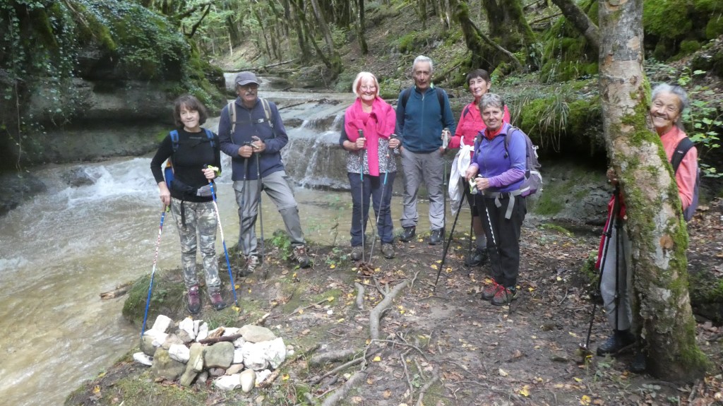 Nous étions 8 randonneurs (dont 5 femmes) à répondre à l’appel de cette randonnée insolite au long du ruisseau de la Pèle près d’Onoz. Compte tenu du déluge de la nuit précédente, je pensais que le passage du gué allait poser un problème: je préviens donc tout le monde, une fois au rendez vous au stade, qu’il est inutile de prendre des chaussures pour traverser car on ne pourra pas traverser! En fait, une fois sur place, on constate que le débit est faible: le gué sera vite franchi sans trop se mouiller …. On prend beaucoup de plaisir à remonter au plus près ce gracieux ruisseau sur un chemin qui demande effectivement de l’attention; on s’émerveille des cascades à la pelle et le temps passe vite…. On n’aura parcouru que 4 km et 100 m de montée avec beaucoup de satisfaction pour tout le groupe… Il faudra revenir par une chaude journée pour remonter ce ruisseau les pieds dans l’eau…..