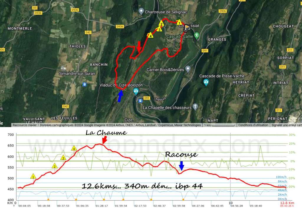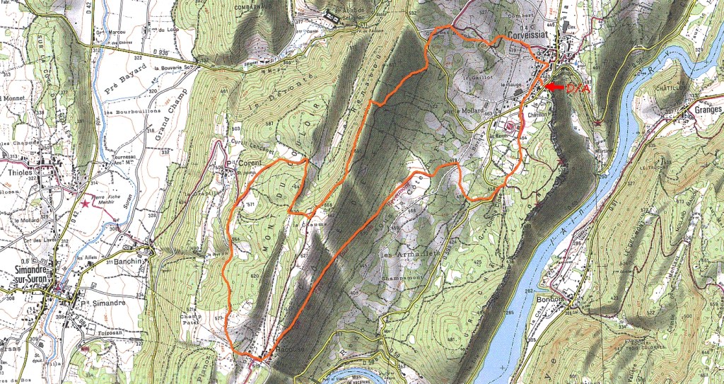 Ce sera une boucle facile par de bons chemins ou sentiers, passons par Combet Baron, la Côte de Fay et une partie du sentier de crêtes, dominons Petit Corent, Racouse pour la pause, suivons la variante du GRP tour du Revermont…. 12.6kms env… 340m dénivelée