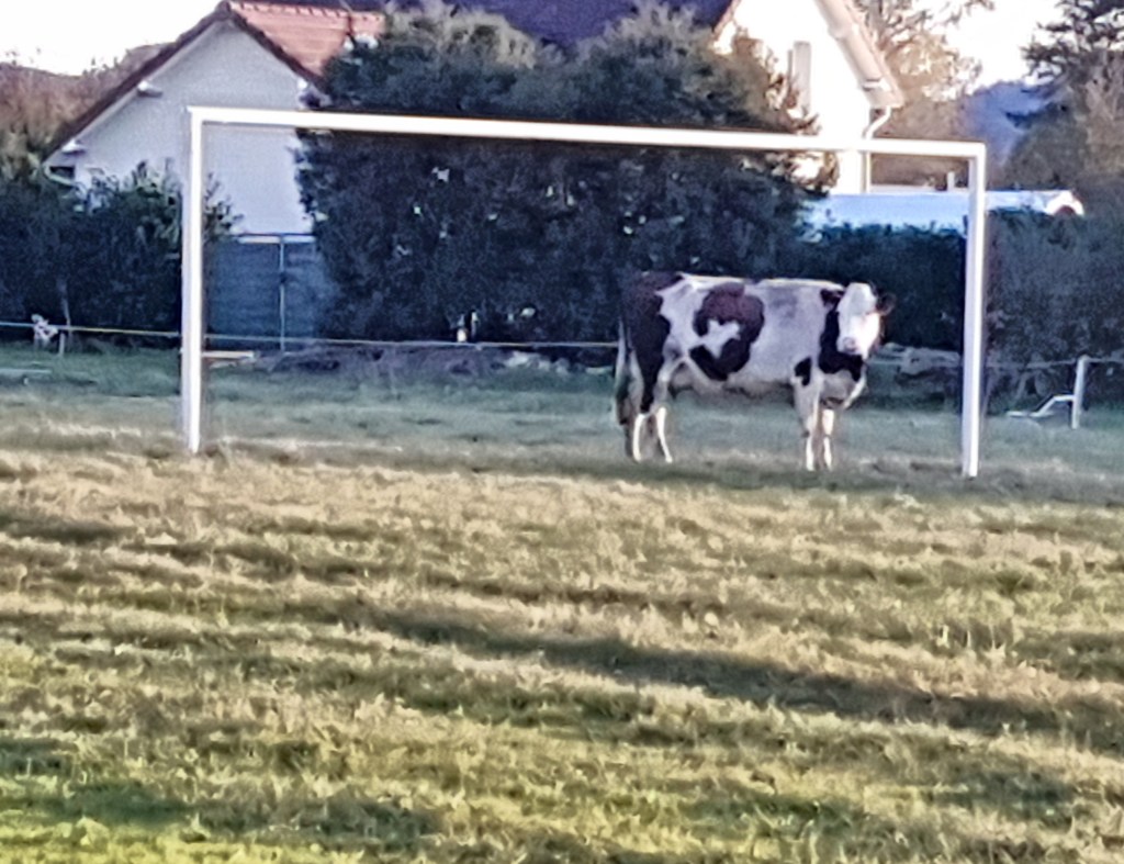 Nous avons bien apprécié l’idée très écologique et peu coûteuse pour tondre et entretenir le terrain de foot de Maisod.