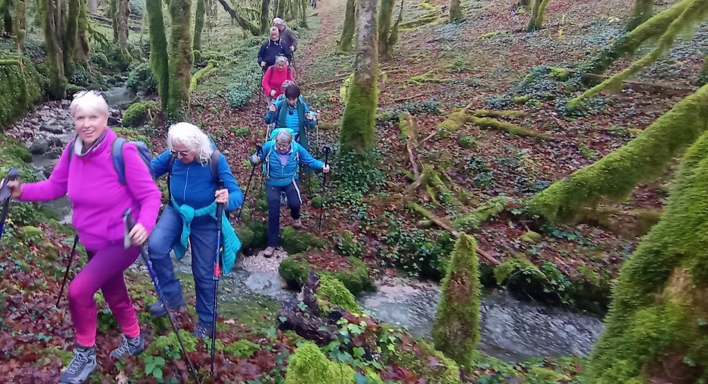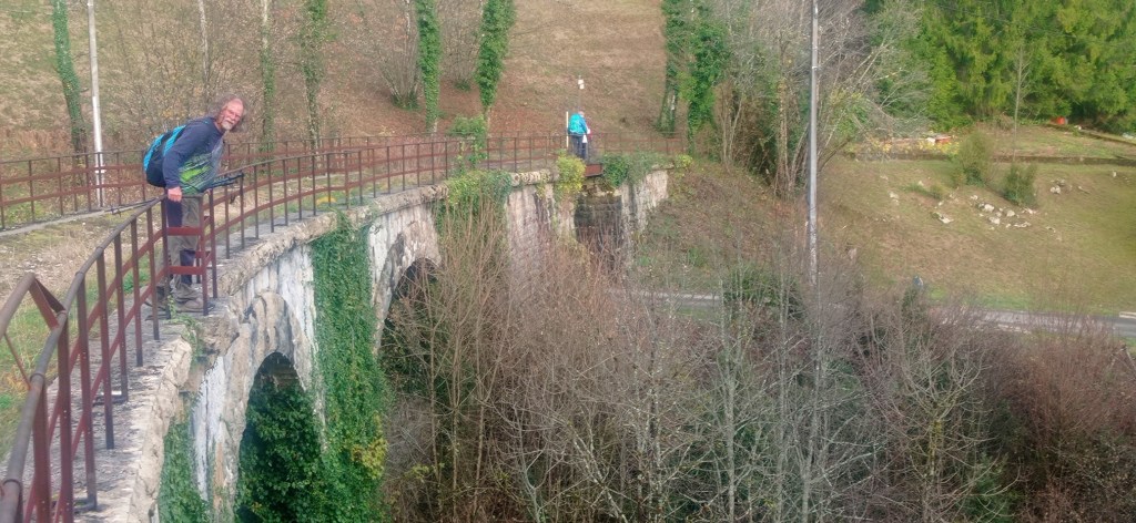 Nous étions 16 randonneurs (11 femmes et 5 hommes) au départ de la gare de Lizon en cet après midi ensoleillé, mais le soleil était déjà bas sur l’horizon. Après bien des petits chemins parfois inconnus de tous (dont moi !), nous avons fini par l’ancienne voie du Tacot dont la mémoire mérite d’être conservé; pour en savoir plus: