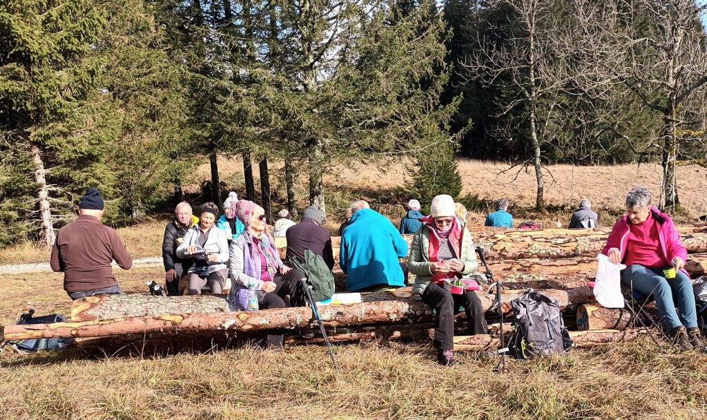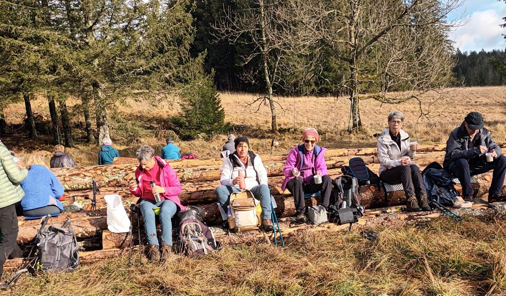 Pas de neige, mais de la bonne humeur.Encore une belle journée avec 20 personnes(15 femmes et 5 hommes) qui sont donc partis des Moussieres, montés au cret Joli, passés par Suza,après un détour pour voir le gouffre Picard.