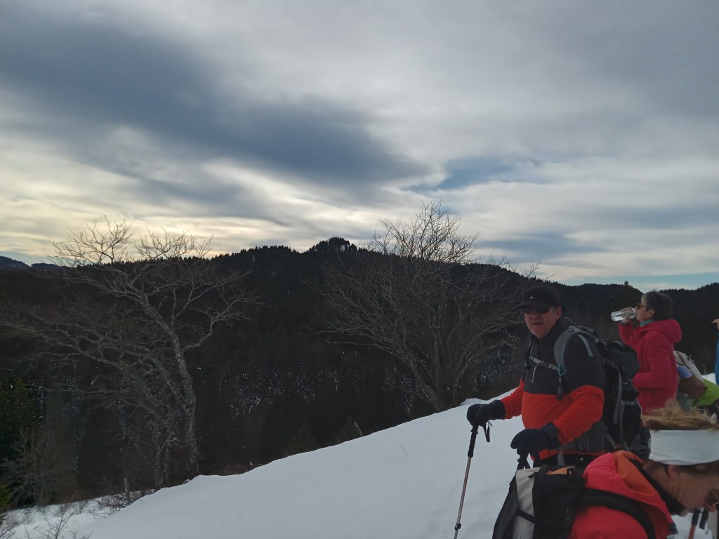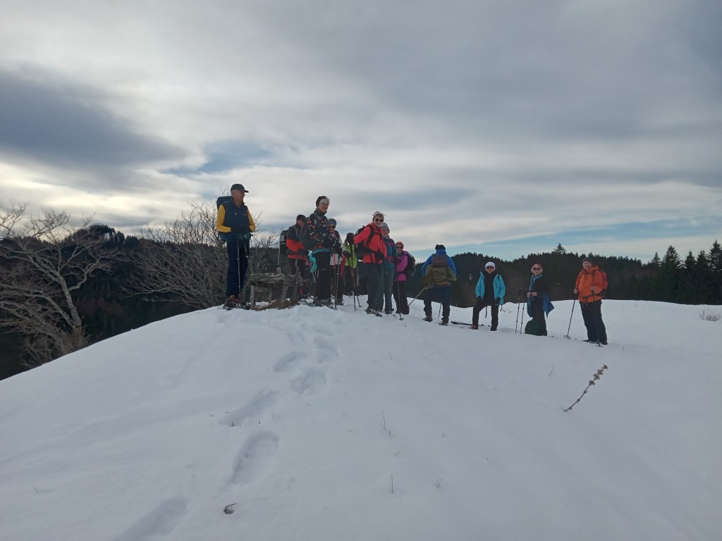 Une premiére sortie raquettes bien agréable avec une neige peu abondante mais suffisante et une météo presque parfaite, ni trop froide ni trop chaude. Le ciel à peine voilé nous a fait profiter d’une belle lumière et de belles vues. Nous étions 16 randonneurs (euses) dont 5 hommes. Du départ des pistes nous sommes passées au Crêt du Nerbier, au Nerbier et casse-croute à la Borne au Lion. Ensuite direction Malatrait par les prés et retour par le Crêt du Nerbier et la Combe Froide. Bilan 9,3kms pour +380 m et -370m de dénivelé.