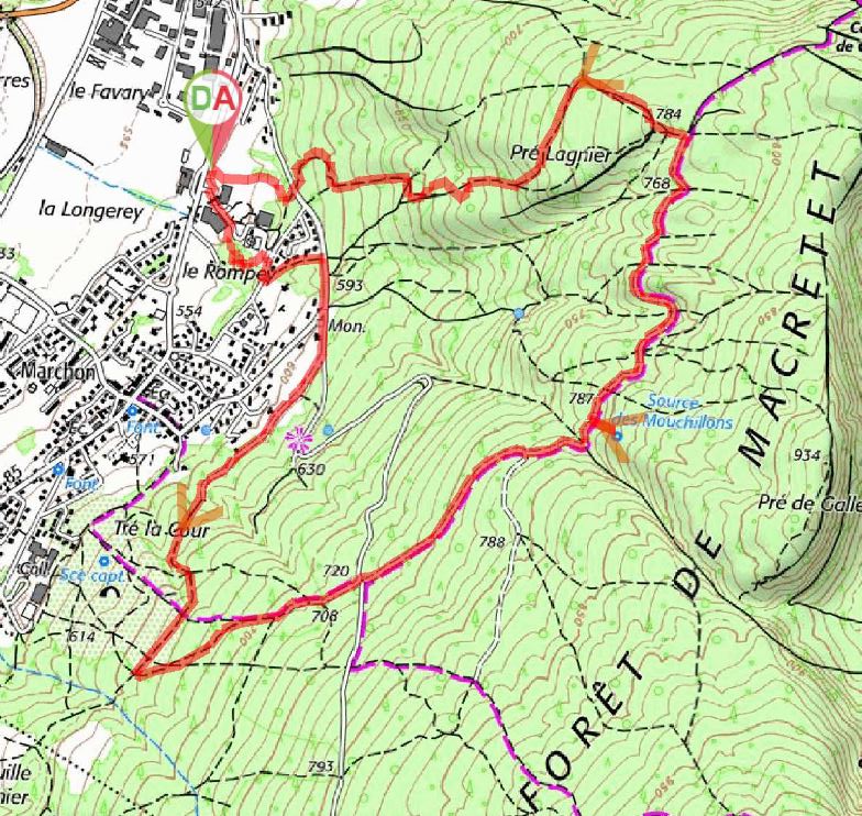 d’Arbent. Passage par de petits sentiers avant de reprendre la rue du Maquis sur quelques mètres.