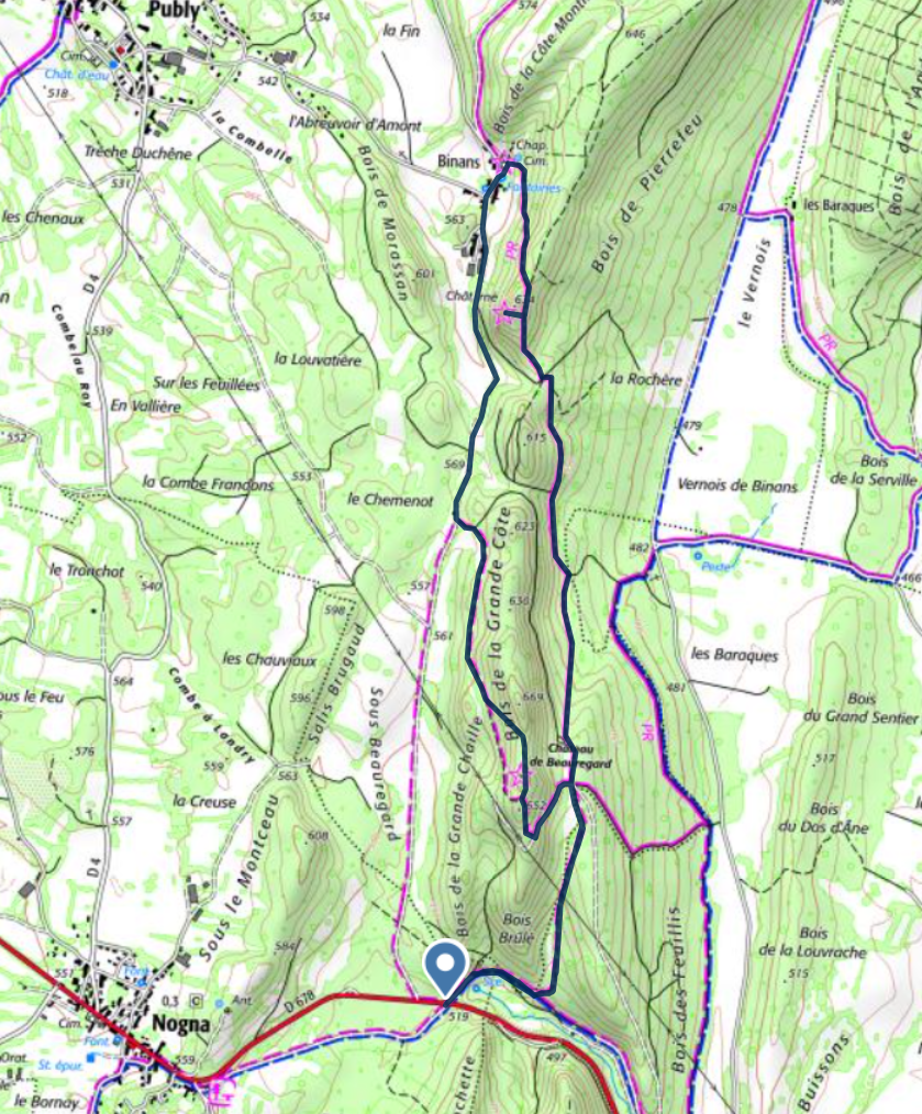 13 dames & 7 hommes m’ont accompagné pour découvrir, à quelques pas de Pont-de-Poitte et son réputé Saut de la Saisse, 2 châteaux ruinés, le village de Binans, le bois de Grande Côte…
