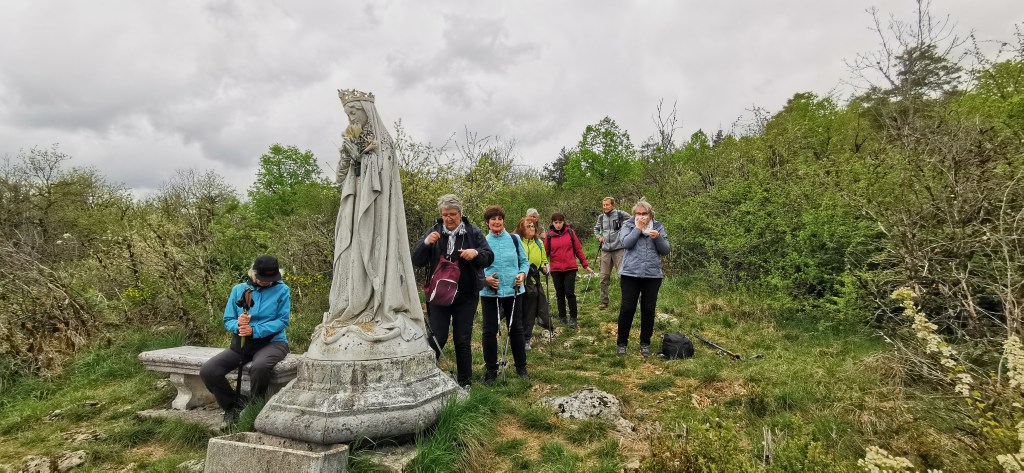 Le départ avancé a permis d’échapper à la pluie et de boucler tranquillement les 4kms et 125m de dénivelé. L’hommage au pape à la vierge a été différent en mangeant des oursons à la guimauve.
