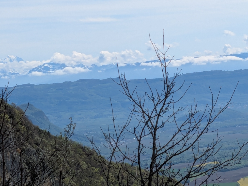 Départ de Virieu le Grand ( pont de Chanille ) en longeant le ruisseau de l’Arène pour monter au belvédère de Sérémond : point de vue sur le Mont Blanc , massif des Bauges , massif de Belledonne ,massif du Vercors ,Dent du Chat .