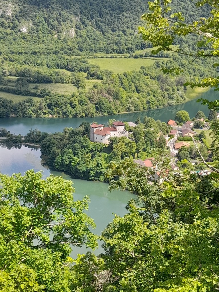 A présent c’est le chemin sur la côte , un sentier en sous-bois jusqu’au premier belvédère en observant l’Ain en dessous , puis le château de Conflans .