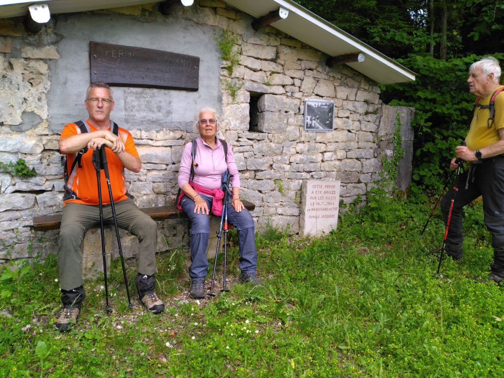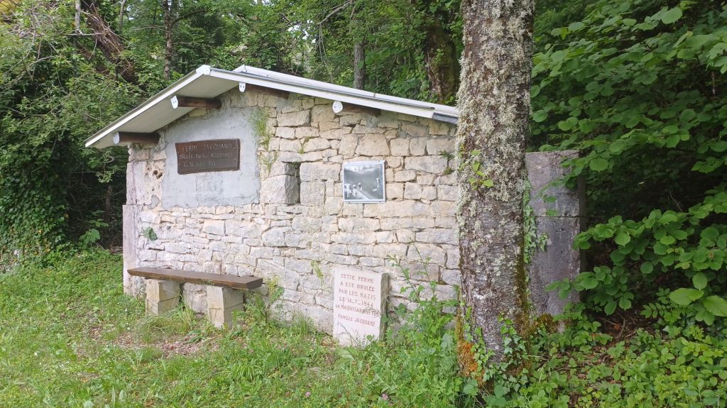 jusqu’à la ferme Jacquand = ruine de la ferme brulée par les allemands en juillet 44.