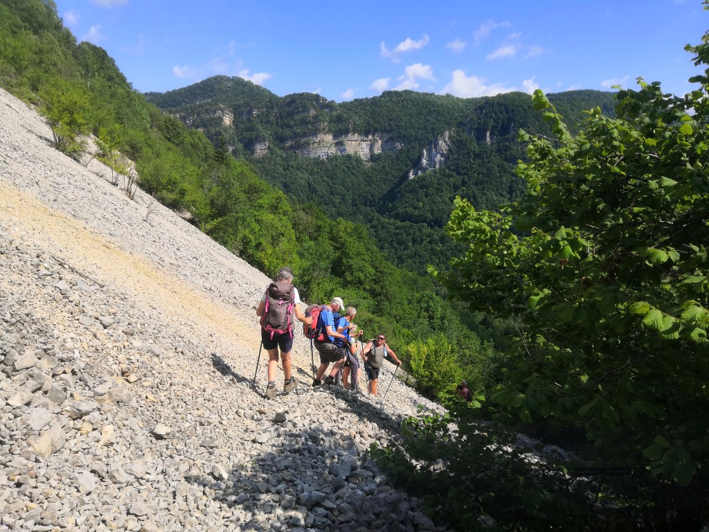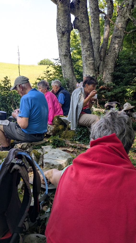 Pour ce mardi nous sommes partis randonner du côté de Chaley. Après une visite en bas de la cascade de Charabote nous sommes montés à Lacoux et nous avons sortis les casse-croutes aux environs de la statue de la Vierge de Lacoux. Ensuite direction le Rocher du Grand Sangle et après une longue descente nous sommes arrivés à Chaley. Nous 9 personnes dont 4 jeunes et beaux garçons.