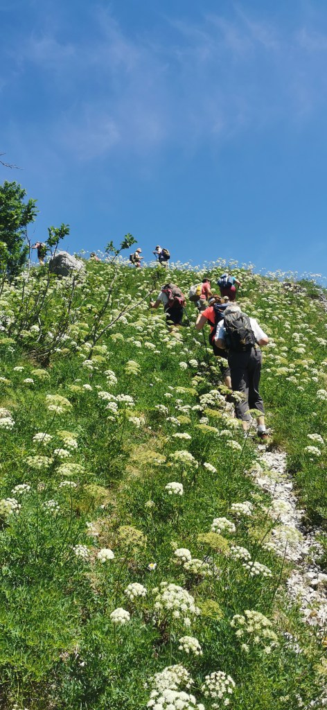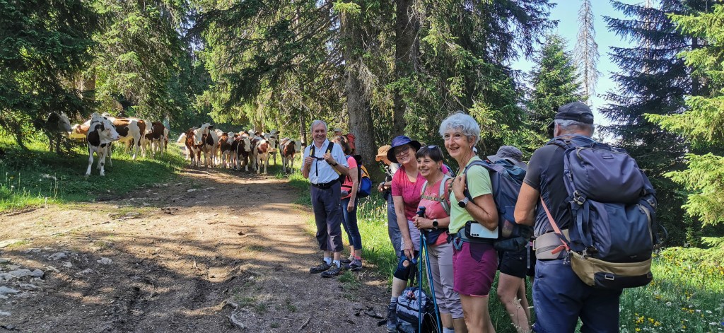 Départ agréable dans la forêt puis rencontre avec un autre groupe de randonneurs (voir photo) .
