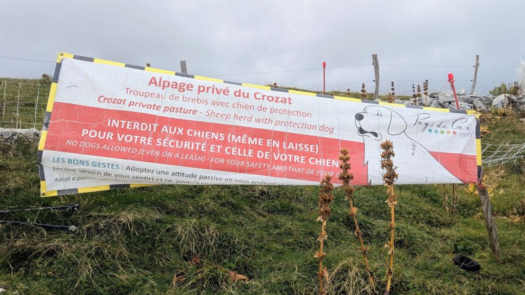 Commentaire : Chemin entre la ferme de la Chencrillette et la ferme de Crozat et retour à la station impossible à prendre en période estivale, réservé aux moutons !!? Se sont les randonneurs qui sont parqués entre 2 barrières électriques. Sur les crêtes d’un côté barrière électrique de l’ autre falaise, chemin obligatoire en Aller _ retour. Bonjour la liberté sur une partie des Monts Jura.