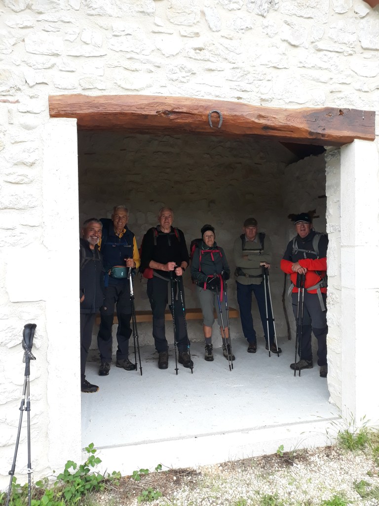 Qui regarde trop la météo reste au dodo ( ou à l’apéro). Ce vieux dicton c’est révélé vrai une fois de plus. Finalement la météo a été clémente et idéale pour ce genre de rando. Nous avons fait le tour de la montagne de Virieu et traversé le vignoble de Manicle, le village de Cheignieu la Balme, Egieu et redescendus sur le hameau de Plan de Mai près de Virieu. Evidemment ce circuit à commencé par une grande descente sur 3 kms du plat sur 5 kms et après le casse-croute une bonne montée de 700m en 6,5kms pour la digestion. Au total nous avons parcouru 16,89 kms pour 799 m de dénivelé positifs. Une rando bien agréable avec 7 courageux (fait très rare 6 hommes et une seule dame composaient cette équipée).