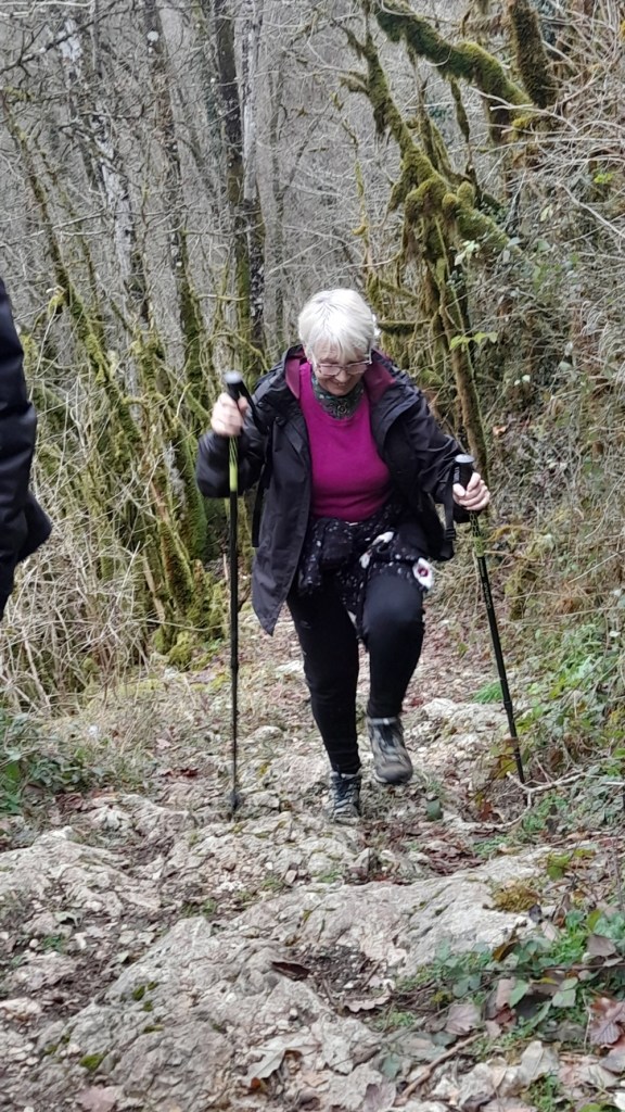 Départ comme prévu derrière la mairie , pour 26 personnes dont 6 Hommes , chacun progresse à son propre rythme jusqu’au belvédère de la pierre qui vire , la vue est toujours aussi superbe .