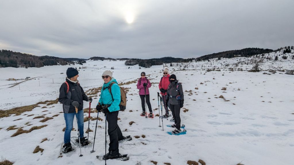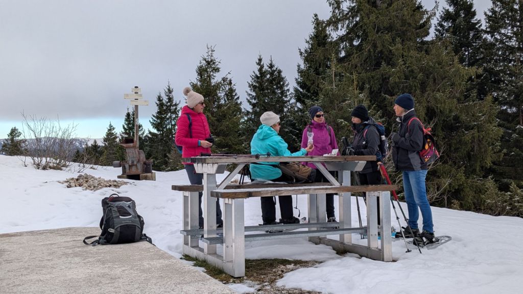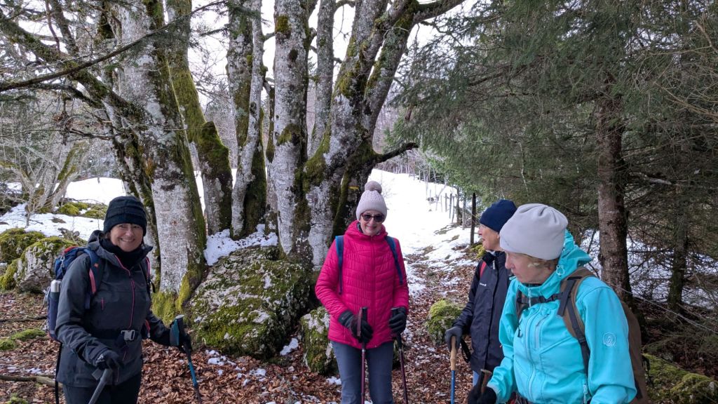 6 personnes dont 5 Colombes ! Pour ce bel après midi. Départ depuis le crêt vers la caserne des pompiers, traversée de la combe en direction de Cernois Boutillier ,croix des Couloirs et retour par les crêtes. neige un peu gelée mais suffisante quand même.