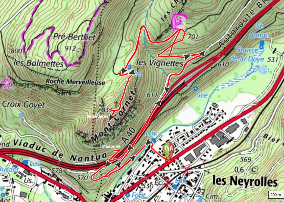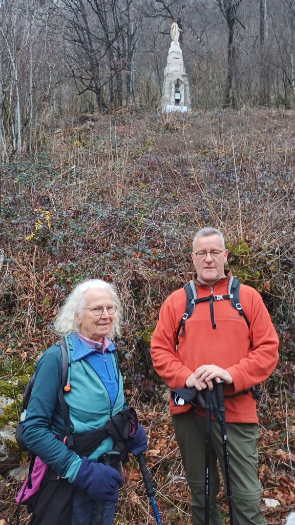 A nouveau une petite montée pour découvrir une madone surplombant l’autoroute et retour au parking après 7,5 km et 360 m de dénivelée pour les 7 participants (4D et 3 H)
