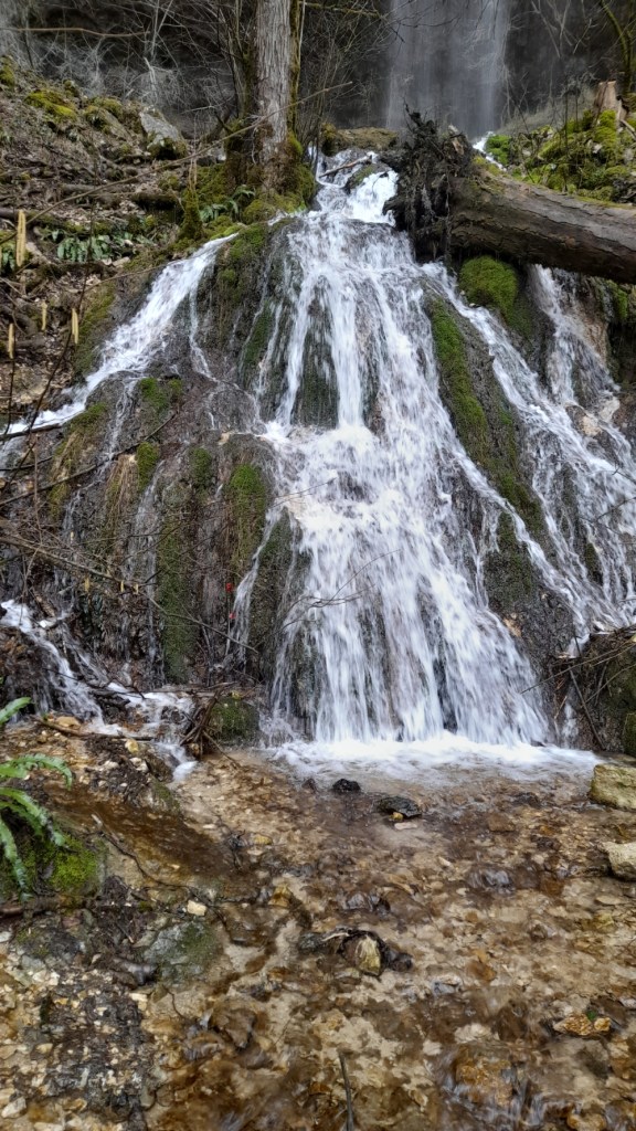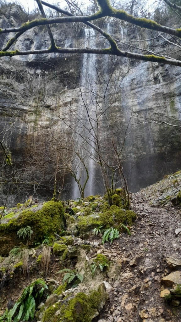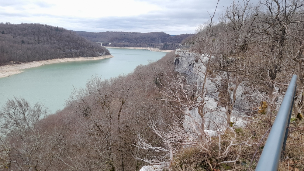 Nous nous dirigeons vers le lieu-dit Sous-Pierre en passant vers une cascade , plus loin , une belle montée nous amène sur le plateau avec deux vues sur le lac de Vouglans .