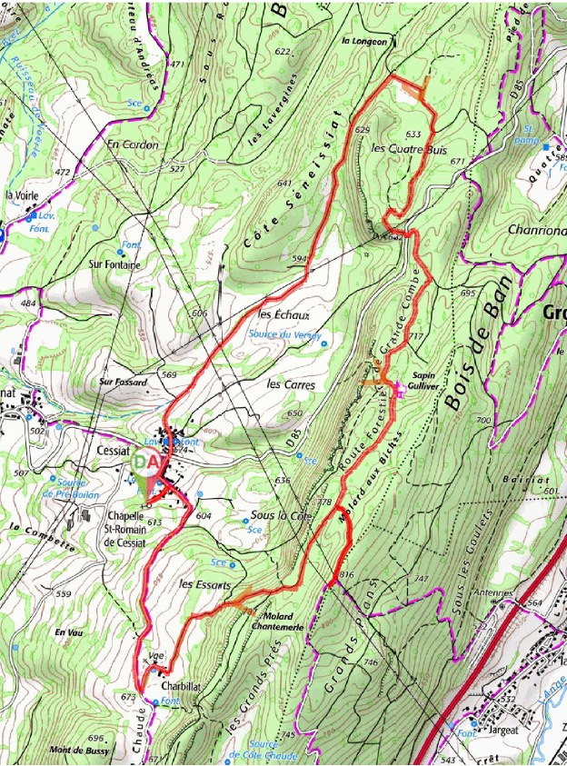 La traversée de Cessiat nous amène à la côte de Séneissiat puis sur le plateau aux Quatre Buis.