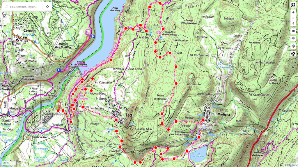 Plus sérieusement le GR9 part dans le Jura à Saint Amour jusqu’à Port Grimaud ( golfe de St Tropez) : 970 kms.. altitude maxi 1902m.. dénivelé cumulé montée 37883 mètres !!